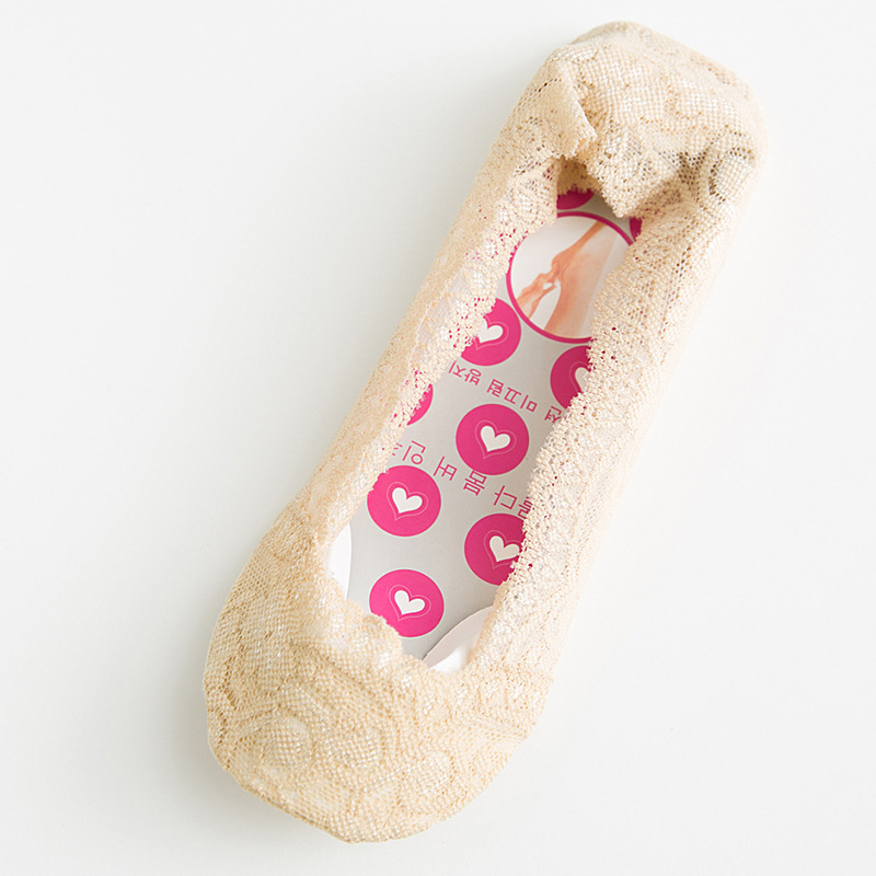 Spring And Summer Lace Boat Socks Women’s Non-Slip Shallow Mouth Low-Top Invisible Socks Solid Color Cotton Bottom Short Socks